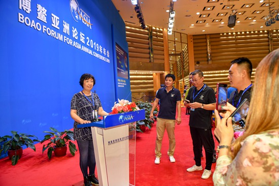 图为海外华文媒体高层人士参观博鳌亚洲论坛永久会址。