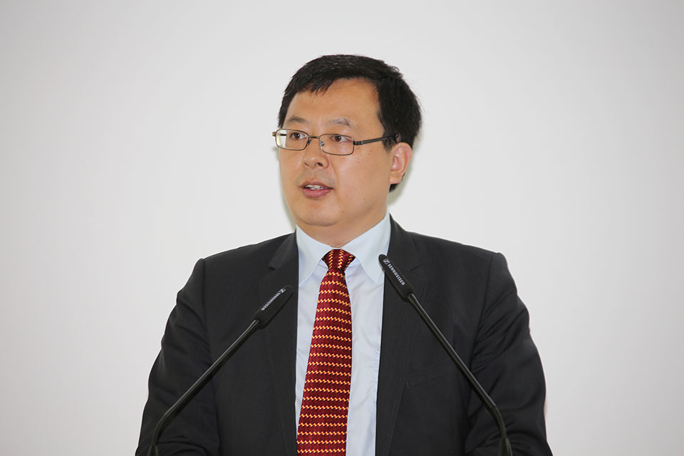 图为中国驻德国大使馆新闻和公共外交参赞曾凡华在会议现场发表讲话。(图片来源:欧洲时报记者黄冠杰 摄)