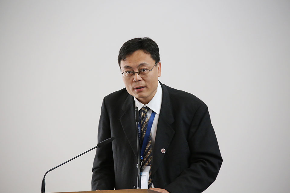 图为中国新闻社副总编张雷在会议现场发表讲话。(图片来源:欧洲时报记者黄冠杰 摄)