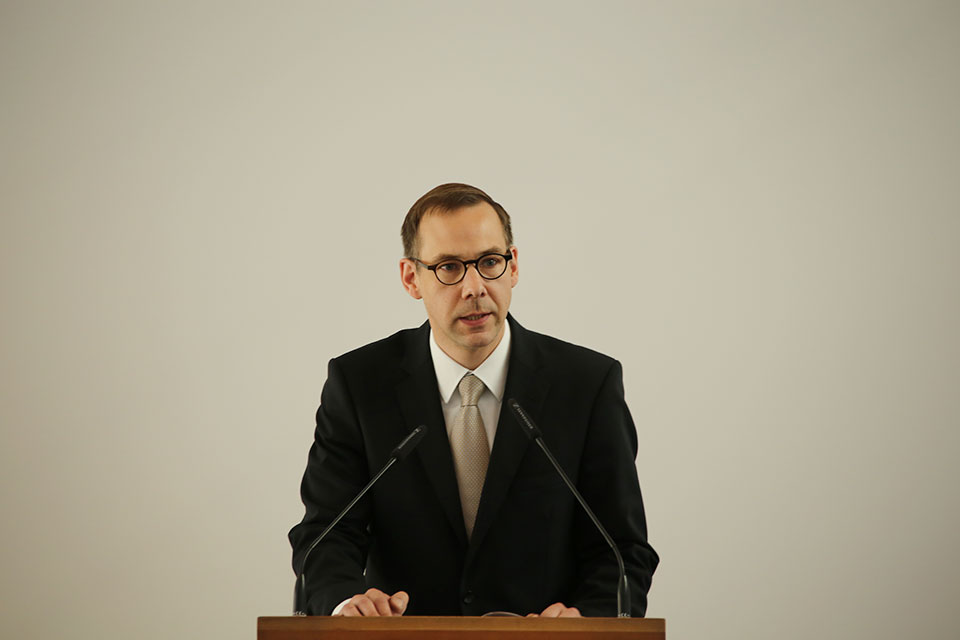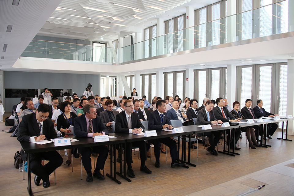 图为汉堡州政府新闻发言人在会议现场发表讲话。(图片来源:欧洲时报记者黄冠杰 摄)