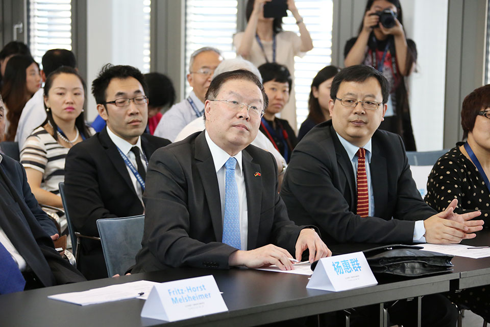 图为中国驻汉堡总领事杨惠群先生在当日会议现场。(图片来源:欧洲时报记者黄冠杰 摄)